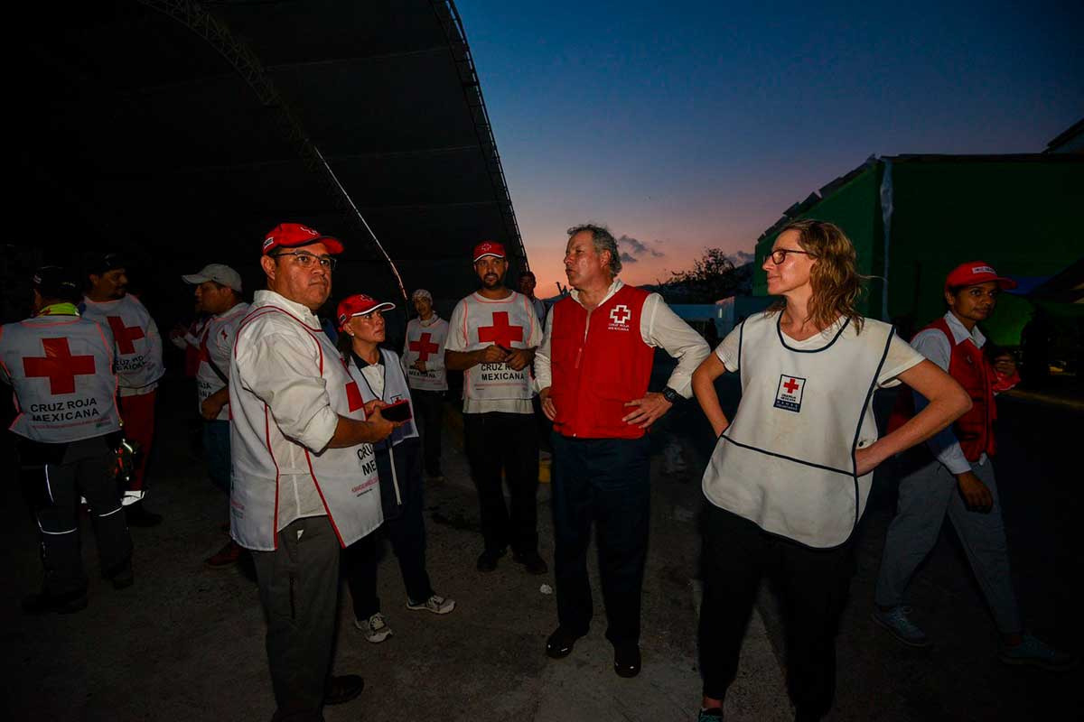 También hizo un nuevo llamado a la población a seguir apoyando a los damnificados del estado de Guerrero a través de los Centros de Acopio de Cruz Roja Mexicana en Toluca, Naucalpan, Huixquilucan, Lilas y Cuautitlán México, abiertos de lunes a domingo de 08:00 a 20:00 horas, donde más de 200 voluntarios reciben, clasifican e integran las despensas que se entregan en propia mano a los damnificados.